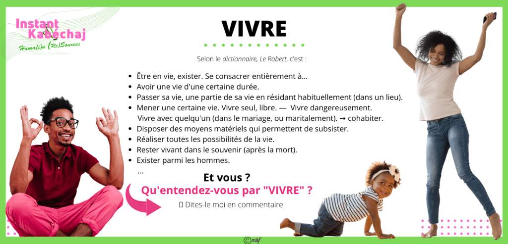 Vivre c’est inévitablement expérimenter, faire, créer, améliorer, innover sur de petits et grands sujets… Vivre c’est discuter, échanger, interagir, partager, s’enrichir de l’autre, des autres, se rapprocher, se lier… Vivre c’est trébucher, se tromper, recommencer, reconstruire, se reconstruire… Vivre c’est rire, douter, se fâcher, bouder, piquer une colère, se calmer oui re-rire… Vivre c’est apprécier, liker, aimer, adorer, détester, adorer détester, tomber amoureux… Vivre c’est plus encore.
